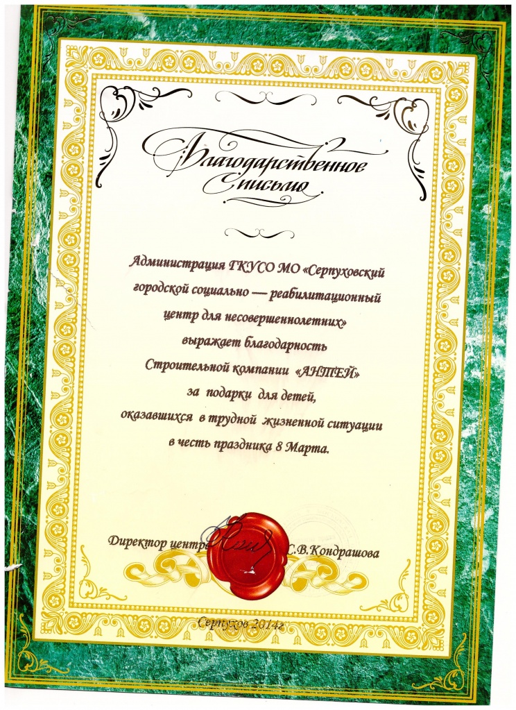 Благодарственное письмо